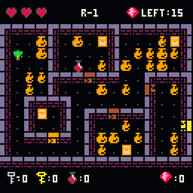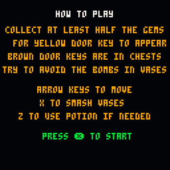 - You need at least half of the gems in a room to get the key to proceed to the next room
